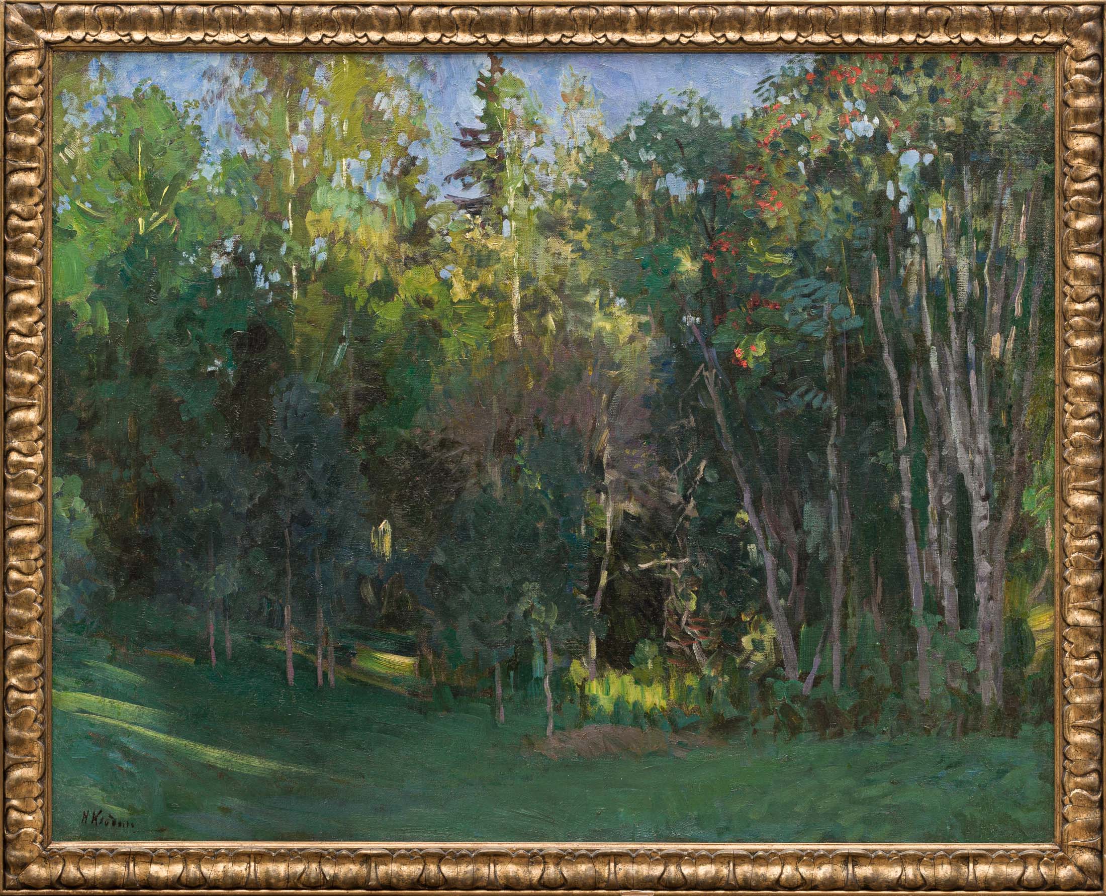 Парковый пейзаж. Красота облагороженных человеком мест — главный акцент произведения.